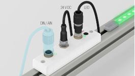 On dispose de cinq entrées numériques et d’une entrée analogique au total. Le contrôleur est équipé de trois prises M12 pour connecter des palpeurs, des commutateurs ou des capteurs, une bande LED RGB multisegment et l’alimentation électrique.