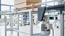 Avec le nouvel entraînement indirect d’item, le moteur est suspendu sous le convoyeur. Le kit de fixation du moteur correspondant peut être monté à droite ou à gauche du galet d'entraînement correspondant pour les convoyeurs à bande et à courroie crantée.
